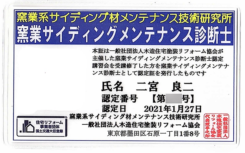 - 窯業(ようぎょう)サイディングメンテナンス診断士