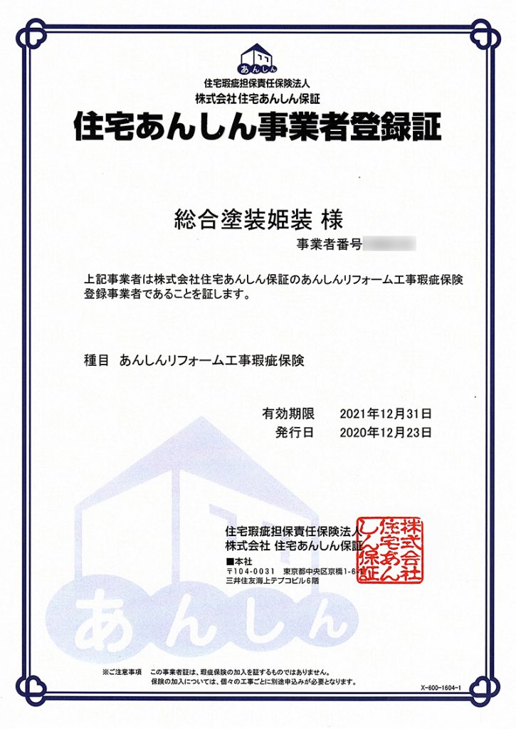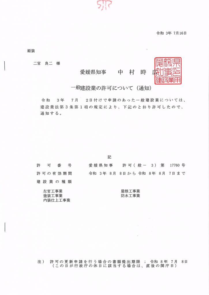 塗装業には、国や県などの第三者機関によって認められる様々な資格や許可書があり、当社は「工事実績が一定以上で不正がない業者」だけに与えられる県知事許可書を取得しています。