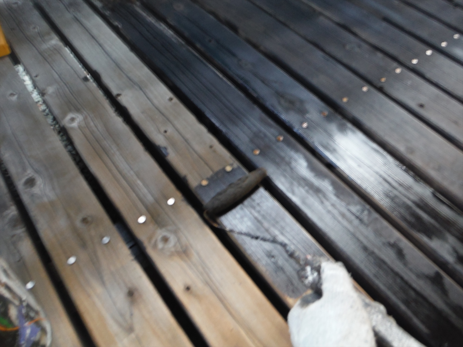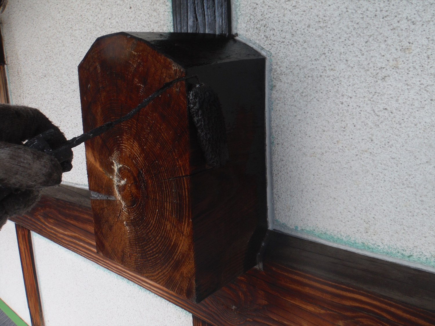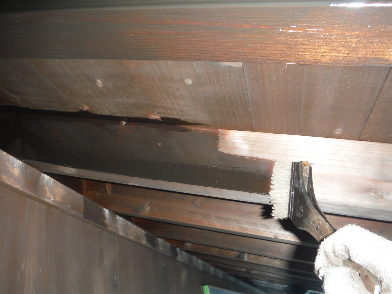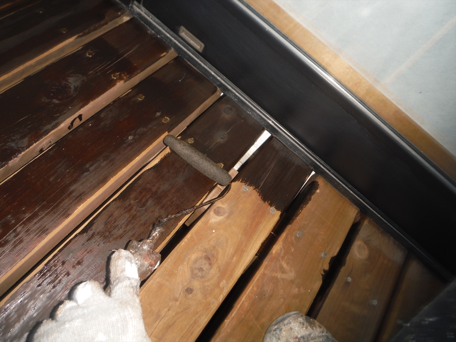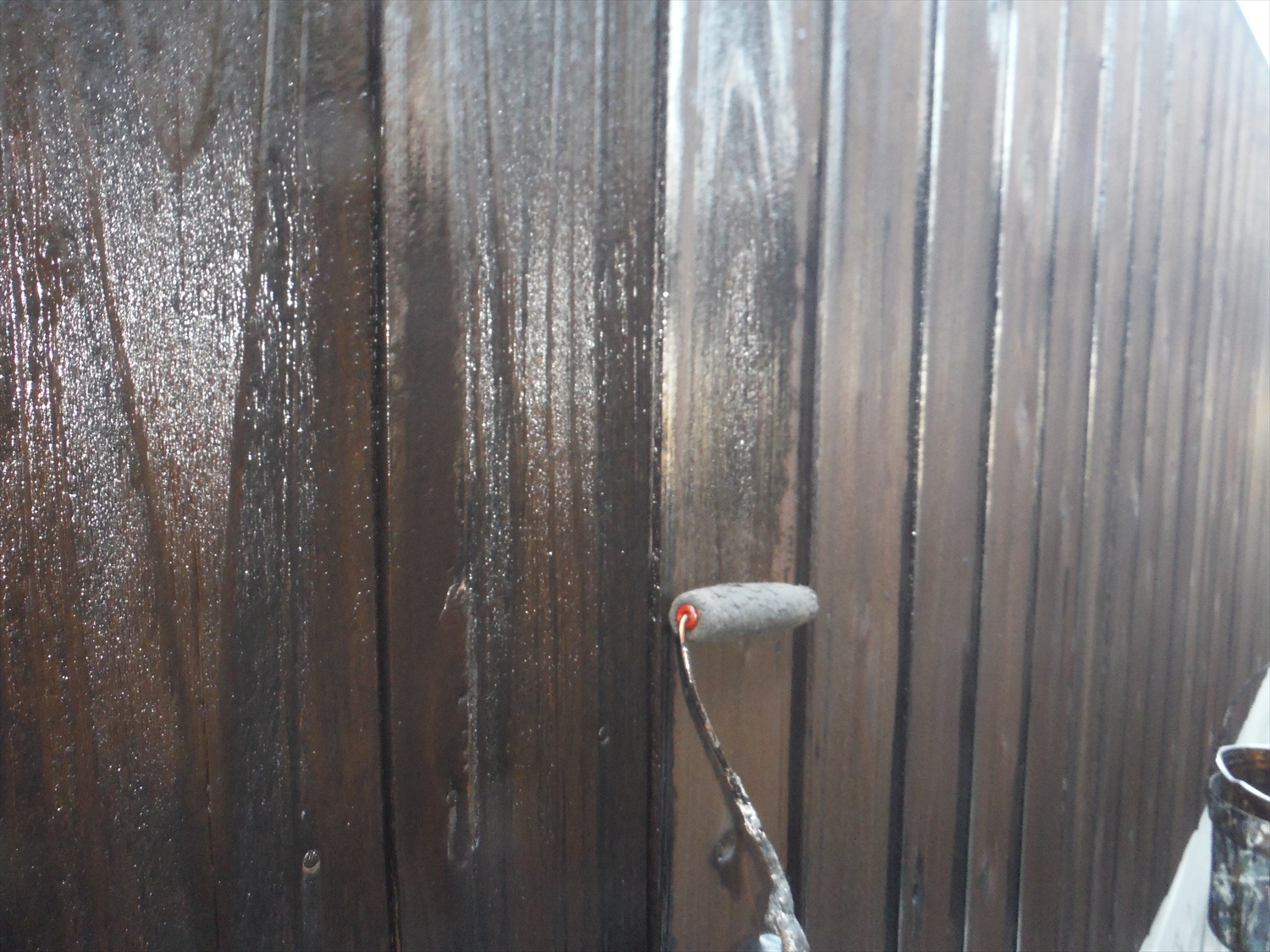 ウェザープロテクト(古色ブラック)2回〜3回塗り施工|杉板木部