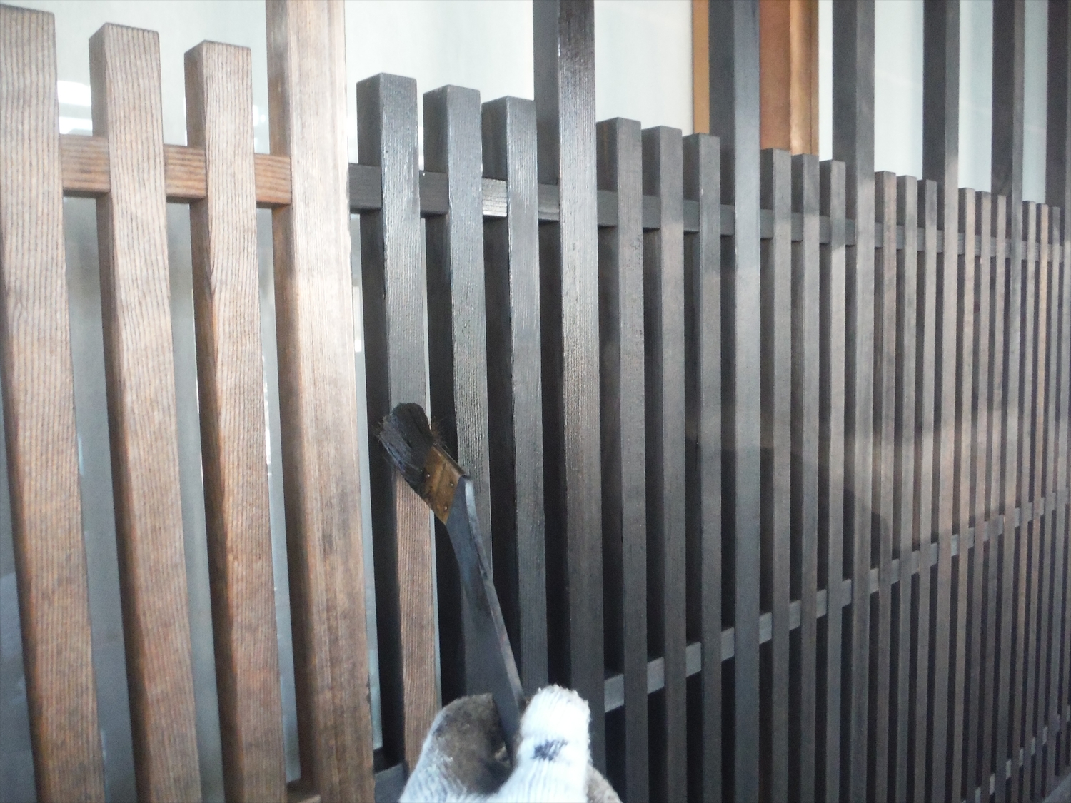 まず、木部の汚れや劣化を確認し、塗料が均一に入るよう下地を丁寧に整えます。